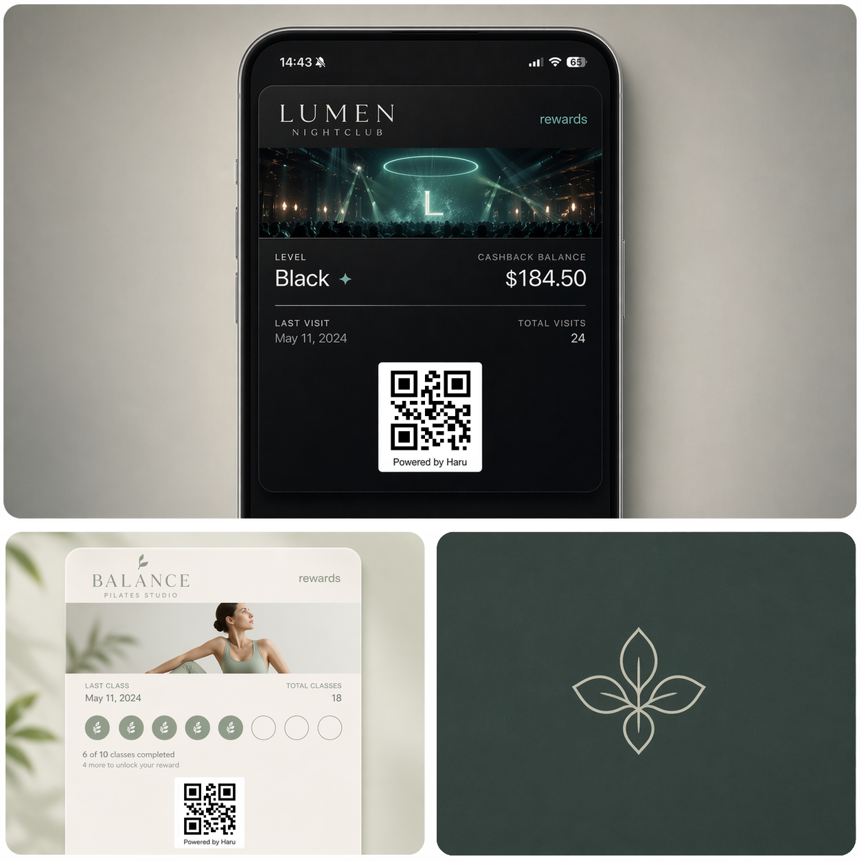 Haru supports every reward model you actually run: punch cards, points-to-discount, cashback, store credit, VIP tiers, and free-item rewards. Configure it once; run it across every location.