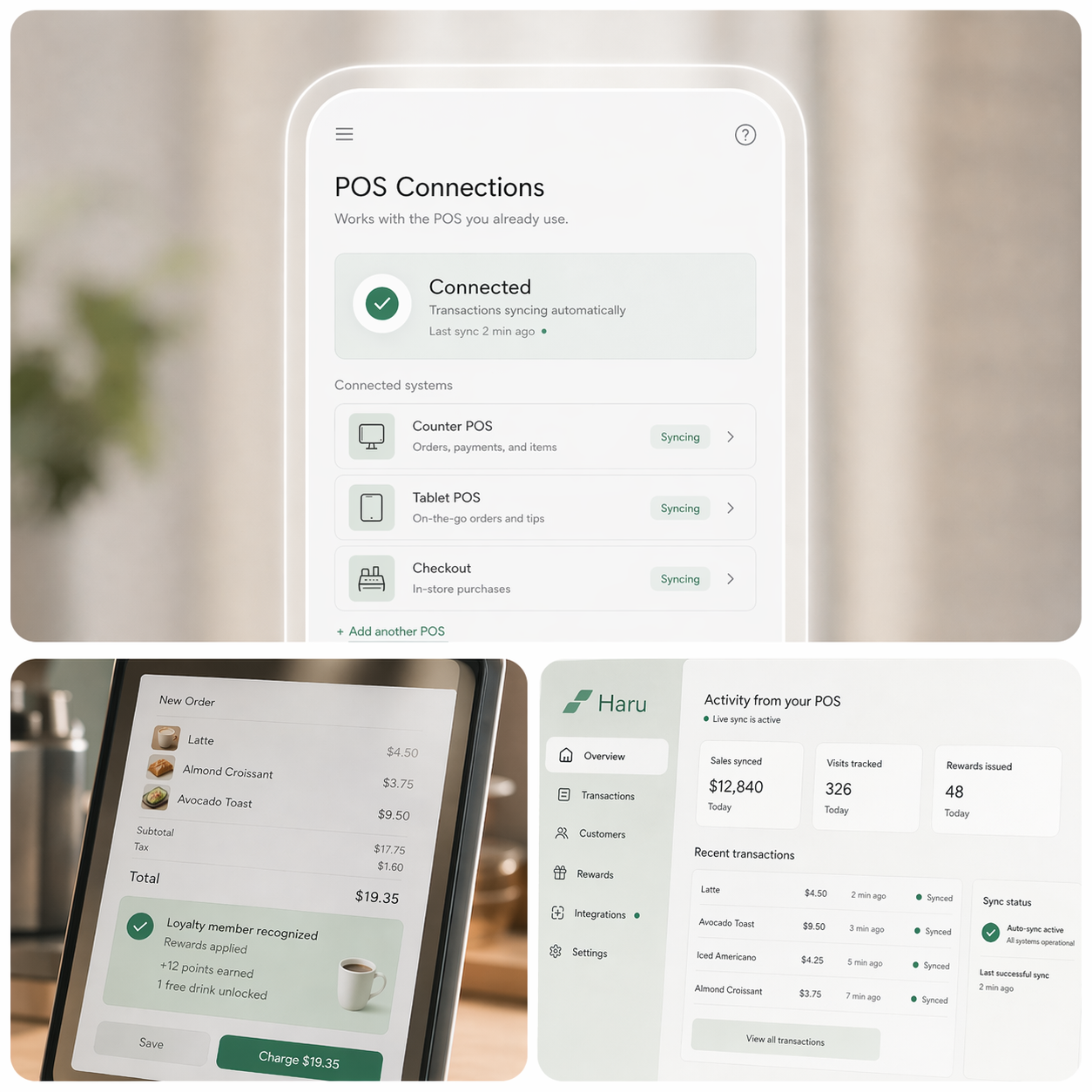 Scan customers from your existing POS or with a standalone QR code at the counter. Transactions flow in, loyalty decisions flow back — no hardware to buy, no workflow to change, no migration.